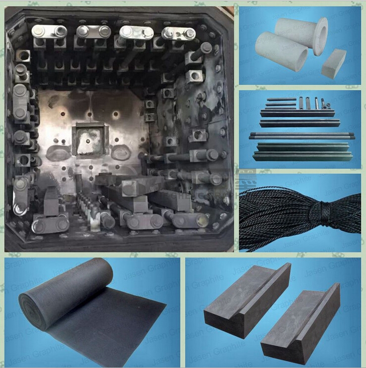真空炉用石墨加热棒在真空炉上获得日益广泛的应用,不仅用来制造真空炉的发热元件、隔热屏,而且还用来制造诸如支架、料盘、导轨、螺栓、轴承、风扇叶片等受力结构零件。石墨在真空炉上的应用,大大简化了真空炉的设计制造,减少了像钨、钼、钽、不锈钢等金属的消耗,降低了成本,提高了真空炉的某些性能和扩大了真空炉的使用范围。